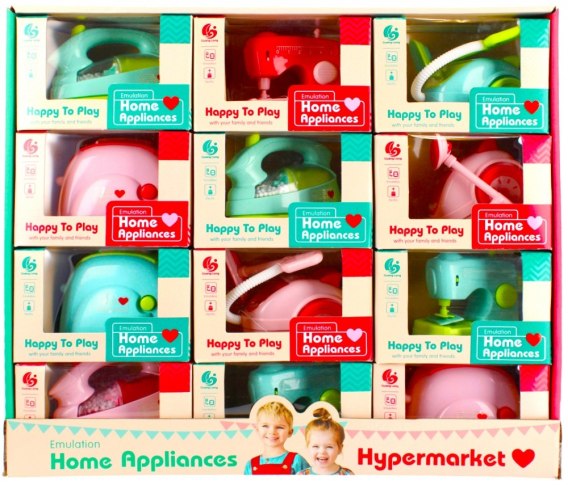 Zalety produktu: sprzęty AGD posiadają efekty ruchowe, maszyna do szycia porusza się, żelazko się świeci a kuleczki znajdujące się w środku poruszają się pod wpływem podmuchu, odkurzacz imituje proces odkurzania, przy tosterze gdy w środku znajdują się kanapki świeci lampka, imituje proces wyskakiwania kanapek tostowych. Profesjonalne urządzenia kuchenne MEGA CREATIVE pozwolą wczuć się każdej małej dziewczynce w role Perfekcyjnej Pani Domu. Zwłaszcza małe dziewczynki uwielbiają naśladować swoje mamy podczas przygotowywania posiłków dla rodziny Zawartość zestawu: AGD występujące w 4 różnych rodzajach: toster, odkurzacz, maszyna do szycia lub żelazko. Wymiary/waga/baterie: wymiary produktu toster dł. x wys. x gł. cm : 10x10x6, żelazko: 12x8x5, maszyna do szycia: 10x9x5, odkurzacz: 9x6x5, wymiary opakowania dł. x wys. x gł. cm : 14x14x9, waga produktu bez opakowania kg : 0,07 kg, waga produktu w opakowaniu kg : 0,14 kg, wymaga zasilania bateriami odkurzacz: 2 x AALR06- nie załączono, maszyn do szycia: 2 x AALR06- nie załączono, żelazko: 2 x ALR06- nie załączono, toster: 1 x AALR06- nie załączono. Zabawka przeznaczona dla dzieci w wieku: 3 . Pakowana w display po 12 szt.