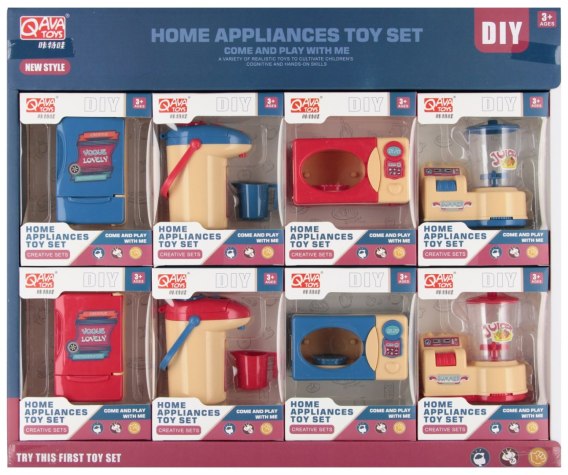 Zalety produktu: każdy z nas ma na pewno nie jeden sprzęt AGD w swojej kuchni, bez nich ani rusz. Sprzęty AGD posiadają efekty ruchowe, lodówka-otwierane drzwi, termos-otwieraną pokrywkę, do wlewania wody/kawy, robot kuchenny dzbanek z otwieraną pokrywą oraz można go zdjąć z podstawy miksera co ułatwia jego użytkowanie, mikrofalówka-otwierane drzwi. Profesjonalne urządzenia kuchenne MEGA CREATIVE pozwolą wczuć się każdej małej dziewczynce w role Perfekcyjnej Pani Domu. Zwłaszcza małe dziewczynki uwielbiają naśladować swoje mamy podczas przygotowywania posiłków dla rodziny Zawartość zestawu: AGD występujące w 4 różnych rodzajach: mikrofalówka, lodówka, czajnik kubek, robot kuchenny. Wszystkie produkty wykonane z plastiku, są imitacją prawdziwych Wymiary/waga/baterie:, wymiary opakowania dł. x wys. x gł. cm : 12x15x6, wymiary produktu dł. x wys. x gł. cm -mikrofalówka 10x6x5; -lodówka 6x9x4: -termos 8x9x8:; -robot kuchenny 10x9x6. Waga produktu bez opakowania kg : 0,03 kg, waga produktu w opakowaniu kg : 0, 69kg, Wymiary opakowania display A 8 dł. x wys. x gł. cm 47x39x6, waga opakowania display A 8 kg. 0,87 kg. Nie wymaga zasilania bateriami . Zabawka przeznaczona dla dzieci w wieku: 3 . Pakowana w kartonik z okienkiem. Pakowana w display po 8 szt. W kartonie po 192 szt.