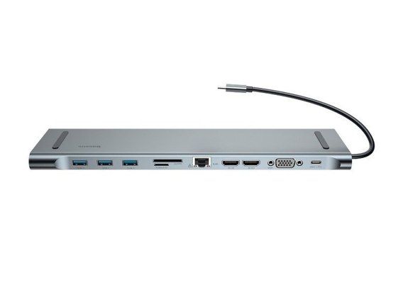 Adapter 11w1 Baseus Enjoyment, HUB USB-C do 2x HDMI, 3x USB 3.0, VGA, RJ45, USB-C PD, SD/microSD, jack 3,5mm stacja dokująca do Netbooków zapewni Ci dostęp do wszystkich portów, których może Ci na co dzień brakować.