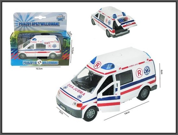 Auto Pogotowie metalowe z dźwiękiem 12cm HIPO HKG003P