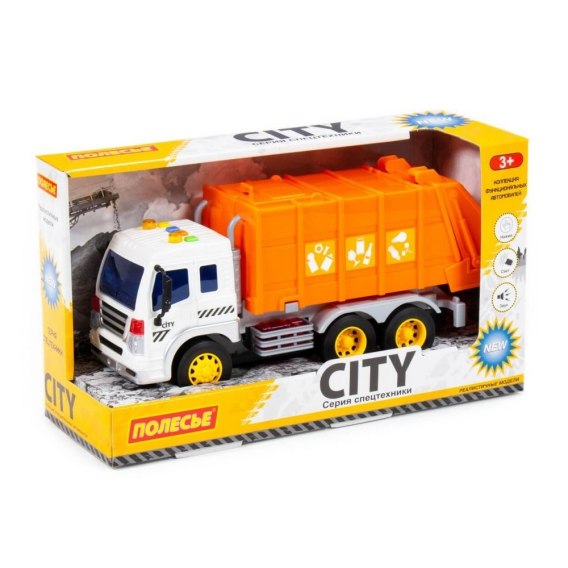 Auto ciężarowe Śmieciarka światło i dźwięk pomarańczowe WADER POLESIE 86426
