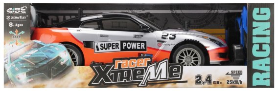 Zalety produktu: auto zdalnie sterowane za pomocą pilota o zasięgu 2,4 Ghz, jeździ we wszystkich kierunkach, samochód zapewni frajdę twojemu dziecku, potrafi jeździć we wszystkich kierunkach, posiada efekty świetlne. Samochód w skali 1:10. Znudziła Cię zabawa zwykłym autem? MEGA CREATIVE ma coś dla Ciebie Auto zadowoli nawet najbardziej wymagające dziecko Zawartość zestawu: samochód wyścigowy, pilot do zdalnego sterowania. Samochód wykonany z plastiku oraz gumy. Wymiary/waga/baterie: wymiary produktu dł. x wys. x gł. cm : 42x12x18, wymiary opakowania dł. x wys. x gł. cm : 55x18x21, waga produktu bez opakowania kg : 1 kg, waga produktu z opakowaniem kg : 1,25 kg, wymaga zasilania bateriami 1 x 7,2V - załączono do zestawu, 3 x AALR6 -nie załączono do zestawu. Produkt przeznaczony dla dzieci w wieku: 8 . Pakowany w kartonik z okienkiem. W kartonie zbiorczym po 8 szt.