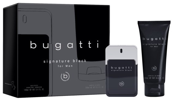 Bugatti Signature Black Man zestaw prezentowy zawiera wodę toaletową 100 ml i żel pod prysznic 200 ml.