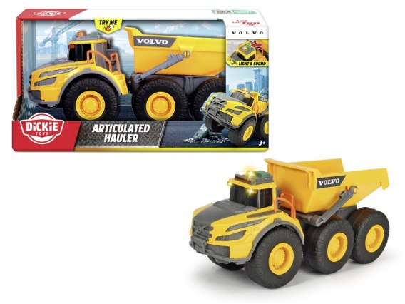 • Licencjonowany pojazd VOLVO to niezbędnik na budowie — gdy pokój dziecięcy zamienia się w plac budowy, ładowarka Dickie sprawnie pomaga przy budowie różnorodnych budowli.