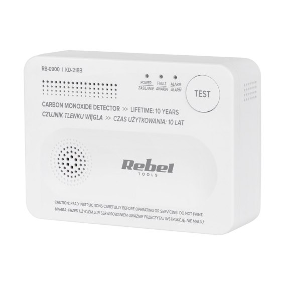 Czujnik czadu Rebel zasilany jest trzema bateriami AA, które zapewniają nawet do 10 lat niezawodnego działania sensora. Urządzenie automatycznie powiadamia o niskim poziomie energii, emitując wyraźny sygnał dźwiękowy i świetlny. Dzięki temu masz pewność, że czujnik zawsze działa skutecznie i nieprzerwanie chroni Twoich bliskich przed tlenkiem węgla.