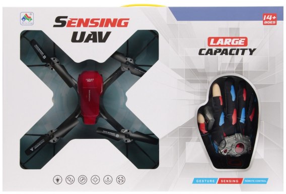 Zalety produktu: Dron Zdalnie Sterowany z Pilotem Wykrywającym Gesty MEGA CREATIVE lataj bez dotykania przycisków Poznaj innowacyjnego drona sterowanego gestami, która łączy nowoczesną technologię z mnóstwem zabawy. Dzięki pilotowi reagującemu na ruchy dłoni, sterowanie dronem staje się proste, intuicyjne i wyjątkowo efektowne. Cechy produktu: Sterowanie gestami, kieruj dronem ruchem dłoni, bez przycisków zapewniając  stabilny lot i precyzyjne manewry. Tryb Headless /Auto-start i lądowanie, łatwe użytkowanie nawet dla początkujących. Funkcja akrobacji 360°, efektowne obroty i zwroty w powietrzu. Bezpieczna konstrukcja, lekkie i elastyczne śmigła odporne na uderzenia, LEDowe oświetlenie, widoczny i efektowny podczas lotów po zmroku. Produkt wykonany z plastiku i materiału. Zawartość zestawu: dron, pilot-rękawica do sterowania, kabel USB, instrukcja. Wymiary/waga/ baterie: wymiary produktu dł. x wys. x gł. cm -dron 29x8x29,-rekawica 12x5x19, waga produktu kg. 0,15 kg. Wymiary opakowania dł. x wys. x gł. cm 52x34x9,  waga produktu w opakowaniu kg. 0,72 kg. Wymaga zasilania bateriami: 1x 3,7V-załączono do zestawu i 2x AAALR03- nie załączono do zestawu Pakowany w kartonik z okienkiem. Przeznaczony dla dzieci w wieku 14 . Pakowanie w kartonie po 12szt.