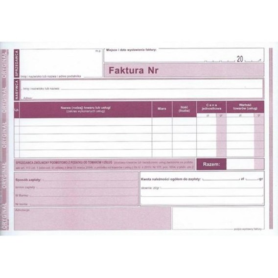 Druk Faktura dla podatników zwolnionych z VAT A5 MICHALCZYK&PROKOP 203-3E
