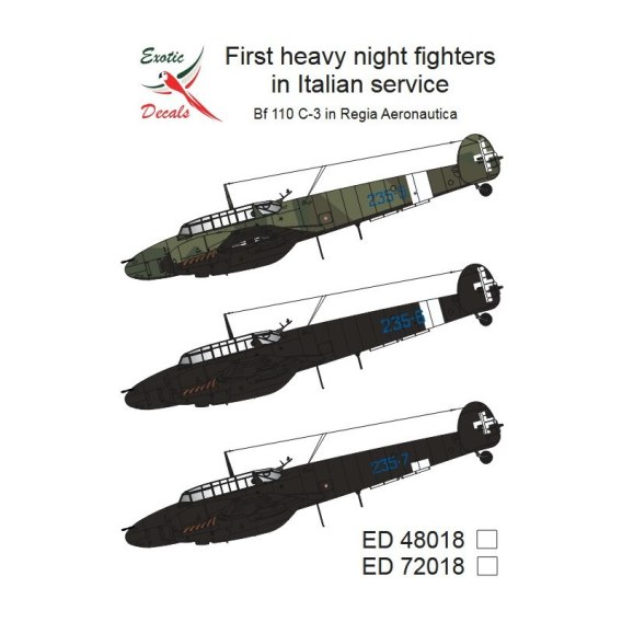 Exotic Decals 32018 First Heavy Night Fighters in Italian service Bf 110 C-3 in Regia Aeronautica