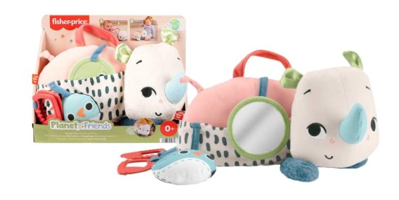 Zawiera lusterko do samopoznania, kontrastową grzechotkę w kształcie ptaka i klekotki do odkrywania podczas leżenia na brzuszku, a także boczne kieszenie do zabawy w „zakładanie i noszenie” w miarę wzrostu dziecka