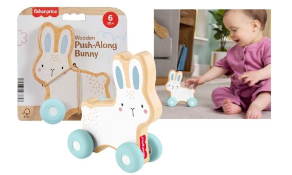 Maluchy mogą „przeskoczyć” od zabawy na siedząco po raczkowanie w ślad za tym drewnianym króliczkiem od Fisher-Price. Ta urocza zabawka ma obracające się kółka i doskonały rozmiar dla małych rączek do chwytania i jeżdżenia, gdzie tylko poniesie wyobraźnia Wykonana z drewna pochodzącego ze źródeł z certyfikatem Forest Stewardship Council FSC-N004566 zabawka do popychania pomaga rozwijać zręczność i sprawność ruchową. Kolory i elementy dekoracyjne mogą się różnić.