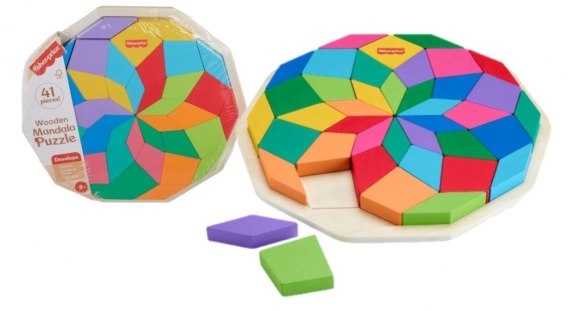 Fisher-Price Mandala – drewniana układanka z klockami, geometryczny wzór, 40 elementów drewnianych, dla dzieci od 3 roku życia Rozwijaj umiejętność rozwiązywania problemów i sortowania u swojego dziecka z tym kolorowym zestawem Mandala – drewniana układanka od Fisher-Price®. Wykonano go z drewna z certyfikatem FSC®. Jest tu 40 klocków, które można dowolnie układać albo sortować na specjalnej podkładce z rowkami ułatwiającymi ułożenie geometrycznego wzoru mandali. Podczas układania puzzli dzieci ćwiczą koordynację ręka-oko i umiejętność skupienia uwagi. Drewniane puzzle dla dzieci z pięknym geometrycznym wzorem mandali w żywych kolorach Zawiera 40 klocków i podkładkę z rowkami pomagającymi układać klocki w odpowiednich miejscach Wykonana z drewna pochodzącego z prawidłowo zarządzanych lasów z certyfikatem Forest Stewardship Council® Pomaga rozwijać zręczność, umiejętność rozwiązywania problemów i pewność siebie