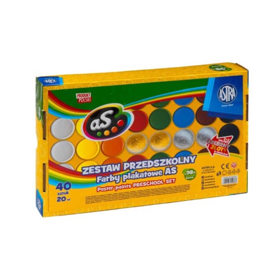 Zestaw przedszkolny Farby plakatowe AS, 40 kol × 20 ml 2 złote, 2 srebrne