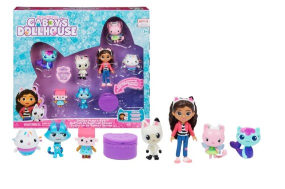 Zabierz do domu swoje ulubione postacie z serialu Koci Domek Gabi wraz z ekskluzywnym zestawem figurek Ten zestaw upominkowy to obowiązkowa pozycja dla fanów Kociego Domku Gabi i zawiera siedem kolekcjonerskich figurek oraz sekretną przesyłkę do kociego domku z niespodzianką w środku. Natychmiast dodaj do swojej kolekcji 8,9-centymetrową figurkę Gabi, a także figurki kotków Gabi: Kiciusia Pandusia, Syrenkotki, Łakotka, Wróżkici, Najkotka i Tekturzątka. Każda figurka posiada detale, które ożywiają kocie postacie z serialu. Tak jak Gabi w serialu, rozpakuj swoją specjalną przesyłkę do kociego domku i odkryj tajemniczy dodatek do zestawu. Co znajdziesz w środku? Po rozpakowaniu, użyj swojej wyobraźni, aby odegrać własne przygody z Gabi i jej kotkami. Wzbogać swoją kolekcję o figurki z zestawu Deluxe Figure Set sprzedawane oddzielnie . Dodatkowa niespodzianka: zeskanuj kod QR wewnątrz przesyłki do kociego domku, aby odblokować specjalną nagrodę w darmowej aplikacji Gabby& 39;s Dollhouse App dostępnej na iOS i Android . Twórz niekończące się przygody z zestawem Deluxe figurek Koci Domek Gabi