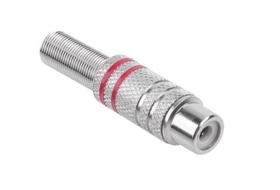 Gniazdo RCA nikiel 2 paski na kabel czerwone