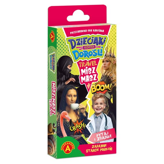 „Dzieciaki Kontra Dorośli – Misz Masz Travel” to gra planszowa, która zapewni świetną zabawę całej rodzinie. Dzieci rywalizują z dorosłymi, odpowiadając na podchwytliwe pytania.