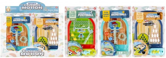 Zalety produktu: gra dla jednej lub dwóch osób, rozwija zdolności manualne dziecka. MEGA CREATIVE przygotowało coś dla fanów sportu. Gra w Koszykówkę i w Kręgle pozwoli Twojemu dziecku nie tylko zadbać o świetną zabawę Gra Koszykówka polega na trafieniu piłką do kosza za pomocą przycisku umieszczonego na panelu Gra w Kręgle polega na zbiciu wszystkich 10 kręgli za pomocą kuli Gra w Piłkę nożną polega na zdobyciu większej ilości bramek od przeciwnika Zawartość zestawu: Gra Koszykówka, 2x piłka do kosza, Gra Kręgle, 10x kręgle, 2x kula, Gra Piłka nożna 1x bramka, 2x piłka nożna. Zabawka wykonana z plastiku. Wymiary/waga/baterie: wymiary produktu dł. x wys. x gł. cm : 15x24x4, wymiary opakowania dł. x wys. x gł. cm : 18x29x5 wymiar opakowania-display A 8 dł. x wys. x gł. cm 36x28x19 waga produktu bez opakowania kg : 0,17 kg, waga produktu w opakowaniu display A 8 kg :1,67 kg, nie wymaga zasilania bateriami. Zabawka przeznaczona dla dzieci w wieku: 3 . Pakowana w display po 8 szt,tj. 3szt Koszykówka, 2szt Kręgle, 3szt Piłka nożna. W kartonie zbiorczym po 48/96 szt.