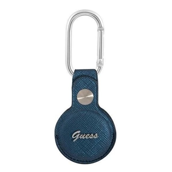 Guess GUATPSASRSB AirTag case niebieski/blue Saffiano Vintage Script