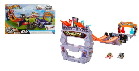 Hot Wheels RacerVerse Star Wars Wielki wyścig Grogu Zestaw z metalowymi pojazdami Hot Wheels inspirowanymi postaciami ze świata Gwiezdnych Wojen: Grogu i Mandalorianinem Pędź w stylu Hot Wheels RacerVerse™ z zestawem Wielki wyścig Grogu. Znajdziesz w nim dwa pojazdy Hot Wheels RacerVerse™ inspirowane postaciami ze świata Gwiezdnych Wojen: Grogu™ i Mandalorianinem. Wypuść pojazdy na górze toru dzięki bramkom startowym w kształcie miecza świetlnego, a potem przekonaj się, kto pierwszy przeskoczy nad szturmowcami i trafi na metę. Zestaw się składa, co ułatwia przechowywanie, a elementy toru łączą się z innymi zestawami Hot Wheels®. Dodatkowe zestawy sprzedawane oddzielnie . Kolory i elementy dekoracyjne mogą się różnić. Pojazdy Hot Wheels RacerVerse™ inspirowane Grogu™ i Mandalorianinem zacięcie rywalizują w zestawie Hot Wheels RacerVerse™ Wielki wyścig Grogu.Znajdziesz w nim dwa pojazdy Hot Wheels RacerVerse™ inspirowane postaciami ze świata Gwiezdnych Wojen – Grogu™ i Mandalorianinem – i zoptymalizowane pod kątem popisów na torze.