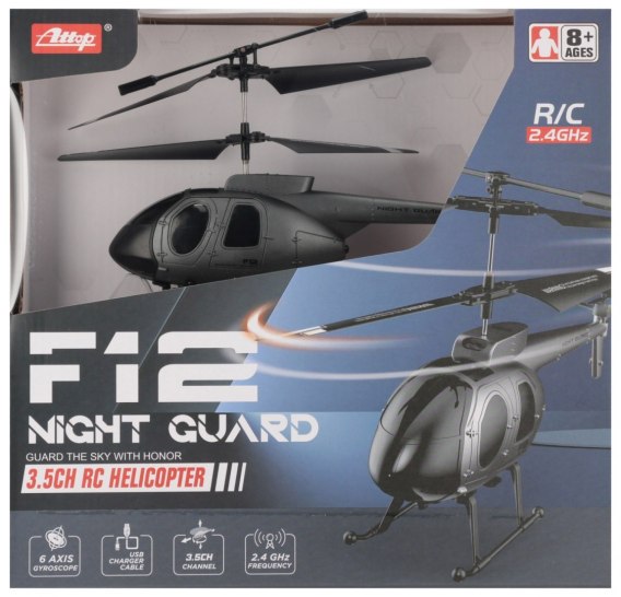 Zalety produktu: Sterowanie zdalne intuicyjny pilot umożliwia lot do przodu, do tyłu, w górę, w dół oraz skręty w lewo i prawo, stabilizacja lotu wbudowany żyroskop zapewnia równowagę, ułatwiając sterowanie nawet początkującym użytkownikom. Lekka konstrukcja odporny na upadki materiał chroni przed uszkodzeniami. Ładowanie USB, szybkie i wygodne zasilanie akumulatora. Helikopter zdalnie sterowany to idealna propozycja dla miłośników lotnictwa i nowych technologii. Wyposażony w lekki, a zarazem wytrzymały korpus oraz stabilizujący żyroskop, gwarantuje płynny i kontrolowany lot zarówno w pomieszczeniach, jak i na świeżym powietrzu przy bezwietrznej pogodzie. Zawartość zestawu: helikopter, pilot do zdalnego sterowania, kabel USB, śrubokręt, zapasowe śmigła. Całość wykonana z plastiku. Wymiary/waga/baterie: wymiary produktu dł. x wys. x gł. cm : 22x14x5, wymiary opakowania dł. x wys. x gł. cm : 27x27x8, waga produktu bez opakowania kg : 0,23 kg, waga produktu w opakowaniu kg : 0,39 kg, wymaga zasilania bateriami 1 x 3,7V- załączono do zestawu i 3 x AAALR03- nie załączono do zestawu. Zabawka przeznaczona dla dzieci w wieku: 8 . Pakowana w kartonik z okienkiem. W kartonie zbiorczym po 24 szt.