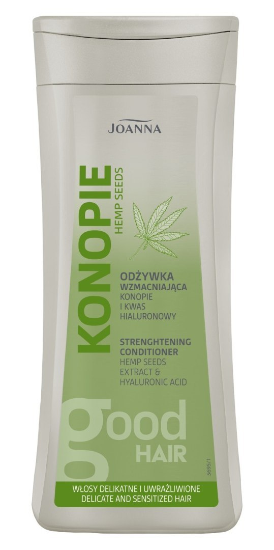 JOANNA Konopie Odżywka nawilżająco-wzmacniająca z ekstraktem z nasion konopi i olejem kokosowym przeznaczona jest do pielęgnacji włosów delikatnych i uwrażliwionych, potrzebujących nawilżenia i wzmocnienia. Formuła produktu została tak opracowana, aby składniki aktywne działały synergicznie, dzięki czemu włosy stają się bardziej wzmocnione, nawilżone i odżywione niż po aplikacji każdego z tych składników osobno.