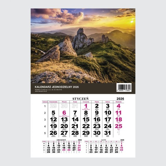 Kalendarz Jednodzielny to idealne rozwiązanie dla osób, które cenią sobie klarowność i przejrzystość w organizacji czasu. Zaprojektowany z myślą o maksymalnej czytelności, umożliwia szybki przegląd wszystkich zaplanowanych zadań, wydarzeń i spotkań w danym miesiącu.