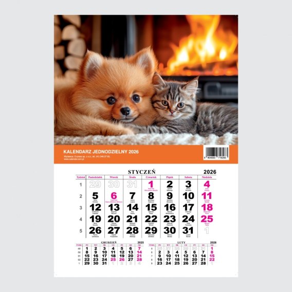 - Układ kalendarium: jeden miesiąc-1 kartka
