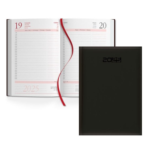 Układ: 1 dzień na stronie Druk, papier: 2 kolory, papier 70 g/m2 w kolorze białym