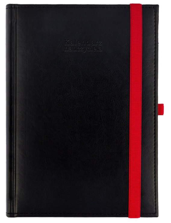 Podręczny kalendarz A5 dzienny dla nauczyciela w oprawie Nebraska z gumką. Przejrzysty układ kalendarium w układzie dziennym. Dużo miejsca na notatki. Przydatne adresy i linki. Miesiąc VIII w formie skróconej: tydzień na dwóch stronach. Miesiące od IX do VI w układzie dzień na stronie. Drukowany na papierze białym; bloki terminarza szyte nićmi; kapitałka i tasiemka białe; rozbudowana część informacyjna wzbogacona o tabele przydatne w pracy pedagoga. For format bloku: 143 x 204 mm,  ilość stron: 368
