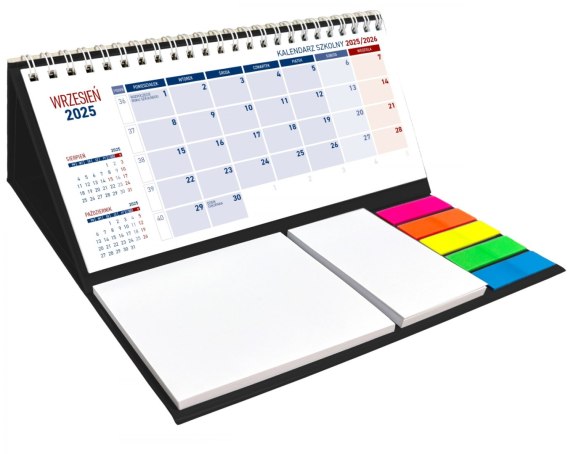 KALENDARZ SZKOLNY BIURKOWY Z NOTESEM SPIRALOWANY 205X100 WN KB057B CZARNY