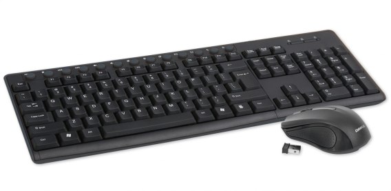 Zestaw OKM071B składa się z bezprzewodowej klawiatury o niskim skoku klawiszy oraz bezprzewodowej myszki optycznej 1000 DPI.