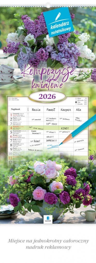 Kalendarz 13 planszowy 2/3A3 notatnikowy Kwiaty LUCRUM WN02