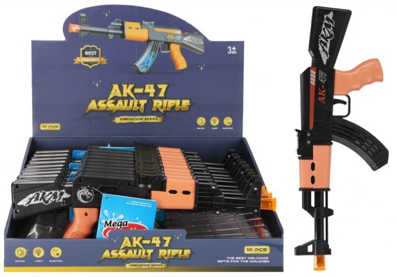 Zalety produktu: Karabin na baterie 35 cm, światło i dźwięk MEGA CREATIVE to realistycznie wyglądająca zabawka, która dostarczy dzieciom mnóstwo emocji podczas zabawy w wojsko lub akcje specjalne. Po uruchomieniu karabin wydaje efekty dźwiękowe i świetlne, co sprawia, że rozgrywka staje się jeszcze bardziej dynamiczna i wciągająca. Zabawka poręczna, a jednocześnie efektowna. Karabin został wykonany z trwałych, bezpiecznych materiałów, co gwarantuje długotrwałą i bezpieczną zabawę. To idealny wybór dla małych miłośników militarnych przygód. Cechy produktu: Efekty świetlne i dźwiękowe jeszcze więcej realizmu w zabawie, Rozwija wyobraźnię i kreatywność dzieci. Wykonany z bezpiecznych i wytrzymałych materiałów. Świetny pomysł na prezent dla małych fanów akcji i militarnych scenariuszy. Produkt wykonany z plastiku. Zawartość zestawu: karabin. Wymiary/ waga/ baterie: wymiary produktu cm 35cm, waga produktu kg. 0,14kg, wymiary opakowania-display dł. x wys. x gł. cm 37x13x34, waga opakowania -display kg. 1,70kg. Wymaga zasilania bateriami -3x AALR06- nie załączonymi do zestawu. Przeznaczony dla dzieci w wieku 3 . Pakowany w display po 10szt. Pakowanie zbiorcze 90/180szt.