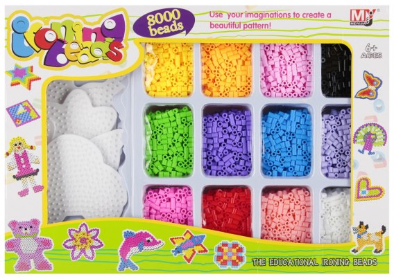 Zalety produktu: kreatywna zabawa, doskonali małą motorykę, pobudza umiejętność koncentracji u dziecka. Zestaw koralików do zgrzewania w dwunastu kolorach od MEGA CREATIVE to idealna propozycja dla dzieci lubiących kreatywne zabawy. Dzięki koralikom MEGA CREATIVE można ułożyć różne kształty a następnie zaprasować je żelazkiem. Gotowa ozdoba może służyć jako brelok do tornistra lub kluczy. Zestaw przeznaczony dla dzieci lubiących ręczne prace. Koraliki występują w dwunastu kolorach: żółty, pomarańczowy, jasno różowy, czarny, zielony, fioletowy, niebieski, jasno fioletowy, różowy, czerwony, brzoskwiniowy, biały. Zawartość zestawu: 12 kolorów koralików w pudełku plastikowym, 4x szablon na którym układa się koraliki. Całość wykonana z plastiku. Wymiary/waga/baterie: wymiary produktu dł. x szer. cm : szablon od 9x9x1 do 11x9x1, wymiary opakowania dł. x wys. x gł. cm : 36x25x5, waga produktu w opakowaniu kg : 0,73 kg, waga produktu bez opakowania kg. 0,62 kg. Nie wymaga zasilania bateriami. Zestaw przeznaczony dla dzieci w wieku: 6 . Pakowany w kartonik z okienkiem. W kartonie zbiorczym po 12/24 szt.