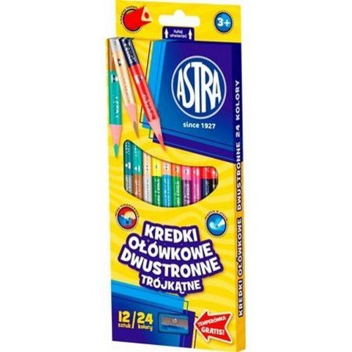 Kredki ołówkowe dwustronne 24 kolory trójkątne temperówka ASTRA 312113001