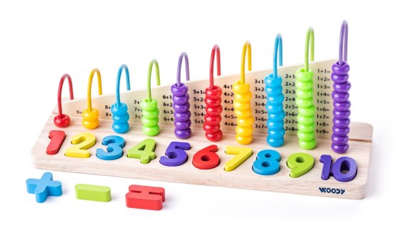 Na każdej metalowej prowadnicy liczydła znajduje się dokładnie tyle koralików, ile wskazuje cyfra umieszczona poniżej. Dzięki temu dziecko może łatwo ćwiczyć liczenie oraz rozwiązywać proste działania matematyczne, które są pokazane na środkowej przegrodzie. Zabawka wspiera rozwój logicznego myślenia, koncentracji i podstawowych umiejętności matematycznych – w formie kolorowej, angażującej zabawy.