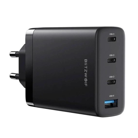Ładowarka sieciowa Blitzwolf BW-S23, 3x USB-C, USB-A, GaN, 100W (czarna)