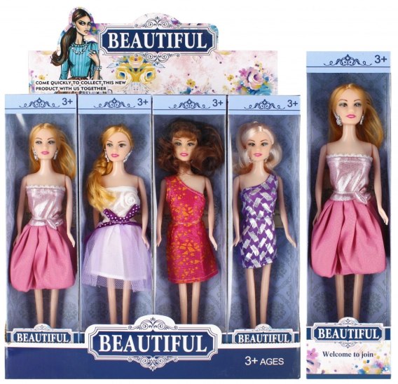 Zalety produktu: rozwijanie wyobraźni dziecka. Każda dziewczynka lubi bawić się lalkami. Lalka od MEGA CREATIVE to fantastyczna zabawka, którą pokocha każda dziewczynka. Laka posiada piękną sukienkę, występuje w czterech wersjach kolorystycznych sukienek i w trzech kolorach włosów. Zabawka wykonana z plastiku, gumy, materiału i włosia. Zawartość zestawu: lalka 29cm. Wymiary/waga/baterie wymiary produktu dł. cm 29cm, waga produktu bez opakowania kg : 0,20 kg, Wymiary opakowania dł. x wys. x gł. cm 8x32x5, waga produktu w opakowaniu kg. 0,28 kg. Nie wymaga zasilania bateriami. Wymiary opakowania display dł. x wys. x gł. cm 33x33x14, waga opakowania display kg. 3.77 kg. Produkt przeznaczony dla dzieci w wieku: 3 . Pakowana w kartonik z okienkiem. Lalka pakowana w display po 12 szt. Pakowanie w kartonie po 120/240 szt.