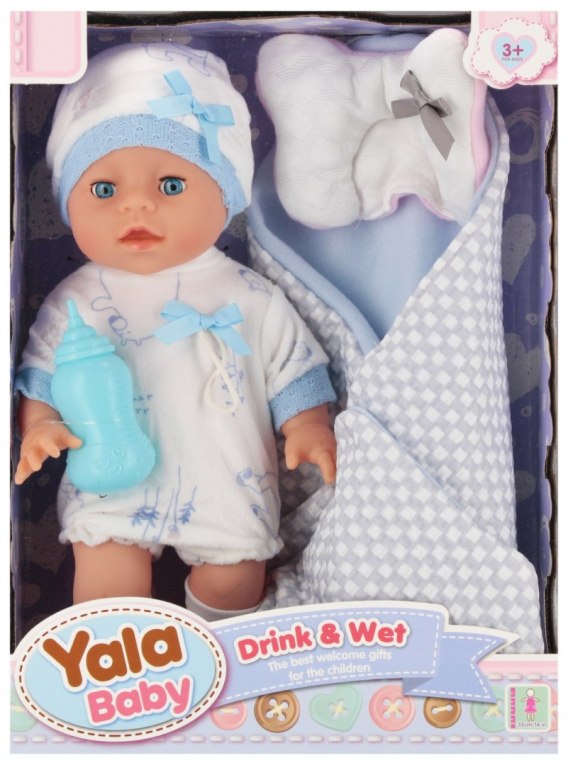 Zalety produktu: nauka odpowiedzialności za drugą osobę, nauka samodzielności, rozwijanie wyobraźni dziecka, lalka 35 cm w ubranku, czapką na głowie oraz kocykiem, lalka w całości wykonana z gumy, posiada zamykane oczy. Lalka Bobas od MEGA CREATIVE to bez wątpienia świetna propozycja zabawy dla Twojej pociechy. Oprócz radości wynikającej z możliwości zajmowania się swoją Lalką jak prawdziwym dzieckiem, to także dobry pomysł na naukę samodzielności oraz odpowiedzialności za drugą osobę Zawartość zestawu: lalka bobas 35 cm w ubranku, butelka, kocyk z kapturem. Zabawka wykonana z gumy oraz tkaniny, akcesoria z plastiku. Wymiary/waga/baterie: wymiary produktu dł. cm : 35 cm, wymiary opakowania dł. x wys. x gł. cm : 26x36x11, waga produktu bez opakowania kg : 0,50 kg, waga produktu w opakowaniu kg : 0,68 kg, nie wymaga zasilania bateriami. Przeznaczona dla dzieci w wieku: 3 . Pakowana w kartonik z okienkiem. W kartonie zbiorczym po 24 szt.