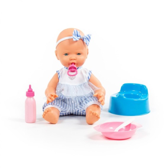 Przekochany bobas "Wesoły" szybko przypadnie do gustu małej opiekunce. Będzie niezawodnym towarzyszem zabawy w dom, mamę, spacerów i podróży. Aby jednak mieć siłę na te i inne przygody, "Wesoły" musi najpierw zjeść porządne śniadanie. Popuść wodze fantazji, daj popis swoich zdolności kulinarnych i przygotuj pyszny posiłek, który "Wesoły" zje bez szemrania za pomocą załączonej łyżeczki i miseczki. Natomiast przed snem nakarm go z butelki, aby nie budził się w nocy i nie marudził. W zestawie również smoczek wkładany do buzi i nocnik. Z tyłu opakowania kartonowy certyfikat narodzin do wycięcia i wypełnienia. Zabawa lalkami uczy dzieci wyrażania emocji, budowania kontaktów międzyludzkich, zrozumienia życiowych sytuacji, opieki nad sobą i innymi.