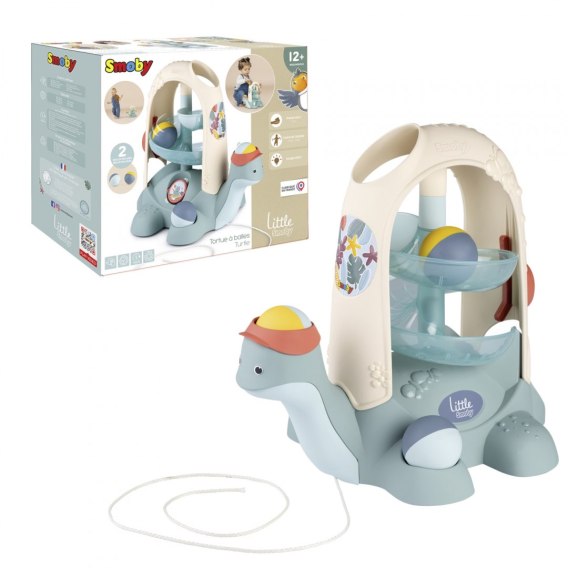• Uroczy żółwik można prowadzić na sznurku: w zestawie dołączone są 2 piłeczki i zakręcona zjeżdżalnia, piłeczki obracają się przy przesuwaniu żółwika.