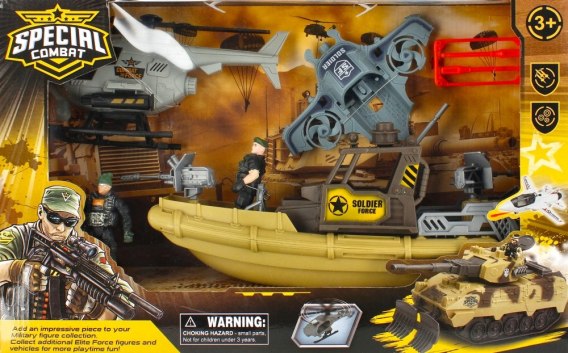 Zalety produktu: Łódź wraz z helikopterem wojskowym to prawdziwa gratka dla wszystkich fanów morskich przygód. Helikopter posiada ruchome elementy. Łódź i Helikopter Wojskowy od MEGA CREATIVE przeniesie cię w świat jednostek specjalnych Zawartość zestawu: Łódź Wojskowa, Helikopter Wojskowy,1x figurka Żołnierza, akcesoria wojskowe. Całość wykonana z plastiku. Wymiary/waga/baterie: wymiary produktu dł. x wys. x gł. cm : łódź 39x15x10: helikopter 24x12x8 , wymiary opakowania dł. x wys. x gł. cm : 48x30x12, waga produktu bez opakowania kg : 0,36 kg waga produktu w opakowaniu kg : 0,75 kg, Nie wymaga zasilania bateriami. Zabawka przeznaczona dla dzieci w wieku: 3 . Zabawka pakowana w kartonik z okienkiem. Pakowanie w kartonie po 12 szt.
