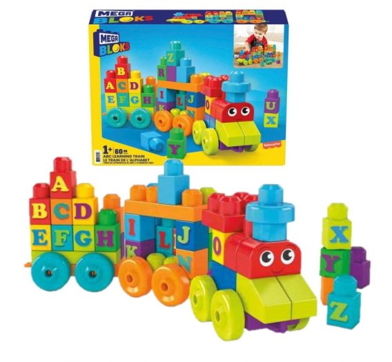 Proszę wsiadać, drzwi zamykać Rozpoczynamy przygodę z alfabetem Twój malec w iście ekspresowym tempie nauczy się alfabetu w towarzystwie przyjaznego kolorowego Pociągu ABC z klocków zdobionymi literkami od A do Z Połącz ze sobą trzy podstawy na kółkach, aby utworzyć pociąg, a następnie układaj na nim klocki z literkami, tworząc kompletny alfabet lub konkretne słowa To prawdziwy pociąg do nauki Możesz też użyć klocków i innych elementów do stworzenia stacji kolejowej, na której zatrzymasz się podczas swojej przygody z alfabetem Produkt idealny dla dzieci w wieku od 1 do 5 lat