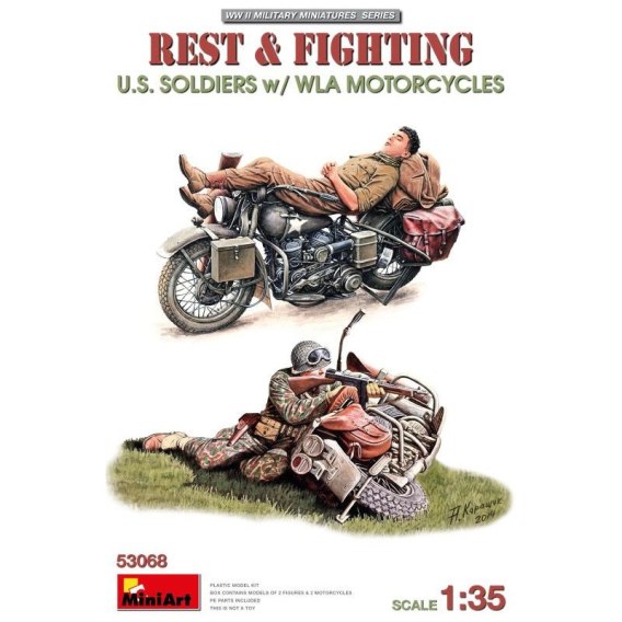 Mini Art 53068 Rest & Fighting U.S. Soldiers w/ WLA Motorcycles