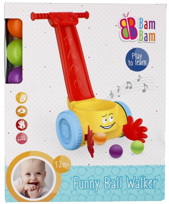 MUZYCZNY ZBIERACZ PIŁECZEK BAM BAM, zabawka spełniająca funkcję- edukacyjną, melodyjną i naukową, na każdy etap rozwoju dziecka. Zróżnicowana faktura i materiały, w tym ruchome elementy jak i muzyczne efekty ukrywające przeróżne odgłosy czy melodyjki ,dostarczają szeregu bodźców, aktywizując wszechstronny rozwój dziecka, począwszy od zmysłów poprzez zdolności manualne, motoryczne oraz percepcję i wyobraźnię. Uroczy zbieracz piłeczek z ruchomymi łapkami wprawi twoje maleństwo w zachwyt a zabawa nim będzie na pewno jedną z najlepszych . Zabawka dzięki swoim zaletą jednocześnie stymuluje zmysły, zdolności manualne, ruchome i motorykę dziecka, zachęca dziecko do aktywności, rozwoju zdolności manualnych, stymulując także jego wyobraźnię i spryt. Przeznaczona od 12 m-ca. Wymiary/waga/baterie: wymiary produktu dł. x wys. x gł. cm 24x44x23, waga produktu kg. 0,51 kg .Wymiary opakowania dł. x wys. x gł. cm 28x35x15, waga opakowania kg. 0,83 kg. Wymaga zasilania bateriami 2x AALR06-załączonymi do zestawu. Pakowana w kartonik z okienkiem.