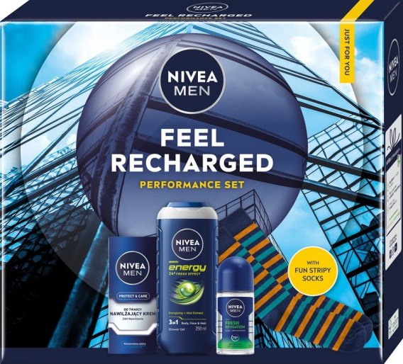 Wybierz sprawdzony zestaw NIVEA FEEL RECHARGED do codziennej pielęgnacji ciała dla bliskiej Ci osoby!