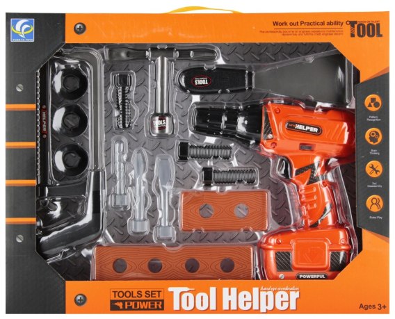 Zalety produktu: Rozwijanie wyobraźni, nauka używania narzędzi warsztatowych, rozwijanie zdolności manualnych, rozwijanie w dziecku pasji. Zestaw Narzędzi MEGA CREATIVE zainteresuje każdego fana majsterkowania. Dzięki tym narzędziom dzieci będą mogły zająć się różnymi konstrukcjami. Może w przyszłości będą naprawdę mistrzami w tym fachu? Zawartość zestawu: wiertarka 3 nakładki, piła ręczna, 3x śrubki 3x nakładka, 1x deseczka mała, 1x deseczka duża, klucz, szpachelka . Wiertarka posiada ruchome wiertło, po włączeniu odpowiedniego przycisku wiertło obraca się w prawą bądź w lewą stronę. Wszystkie elementy wykonane z plastiku. Wymiary/waga/baterie: wymiar opakowania dł. x wys. x gł. cm : 38x30x7, waga produktu w opakowaniu kg : 0,51 kg, wymiar produktu d. x wys. x szer. cm -wiertarka 17x18x5, waga produktu kg. 0,34 kg. Wymaga zasilania bateriami-wiertarka 2x AALR06 nie załączonymi do zestawu. Zestaw przeznaczony dla dzieci w wieku: 3 . Pakowany w kartonik z okienkiem. Pakowanie w kartonie po 18/36 szt.