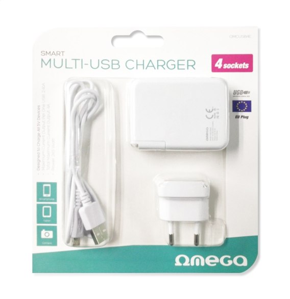 OMEGA CHARGER ŁADOWARKA 4-PORT USB 4A WHITE EU plug [42672] TE