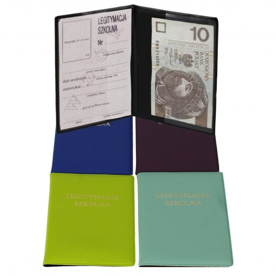 Zalety produktu: Okładka na legitymacje szkolną wykonana z folii PVC, wewnątrz usztywniona tekturą posiada dwie kieszonki, zabezpiecza legitymację szkolną, kartę rowerową, obiadową czy bilet miesięczny. Uniwersalny format na dokumenty szkolne. Okładka występuje w dziesięciu kolorach: granatowym, zielonym, bordowym, czerwonym, malinowym, jasnoniebieskim, niebieskim, jasnozielonym, seledynowym, turkusowym. Wymiary produktu dł. x wys.. cm 8x11 cm. Waga produktu kg. 0,02 kg.