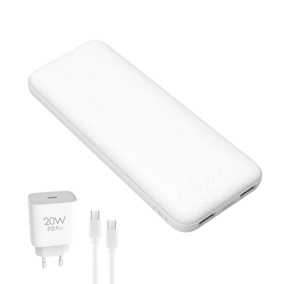 PLATINET POWER BANK 10000 mAh + CHARGER 20W PD + CABLE USB-C 1M 3IN1 SET WHITE [45998]