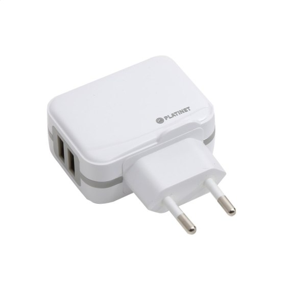 PLATINET WALL CHARGER ŁADOWARKA SIECIOWA 17W 2 x USB-A + MICRO USB CABLE 1M WHITE [43723]